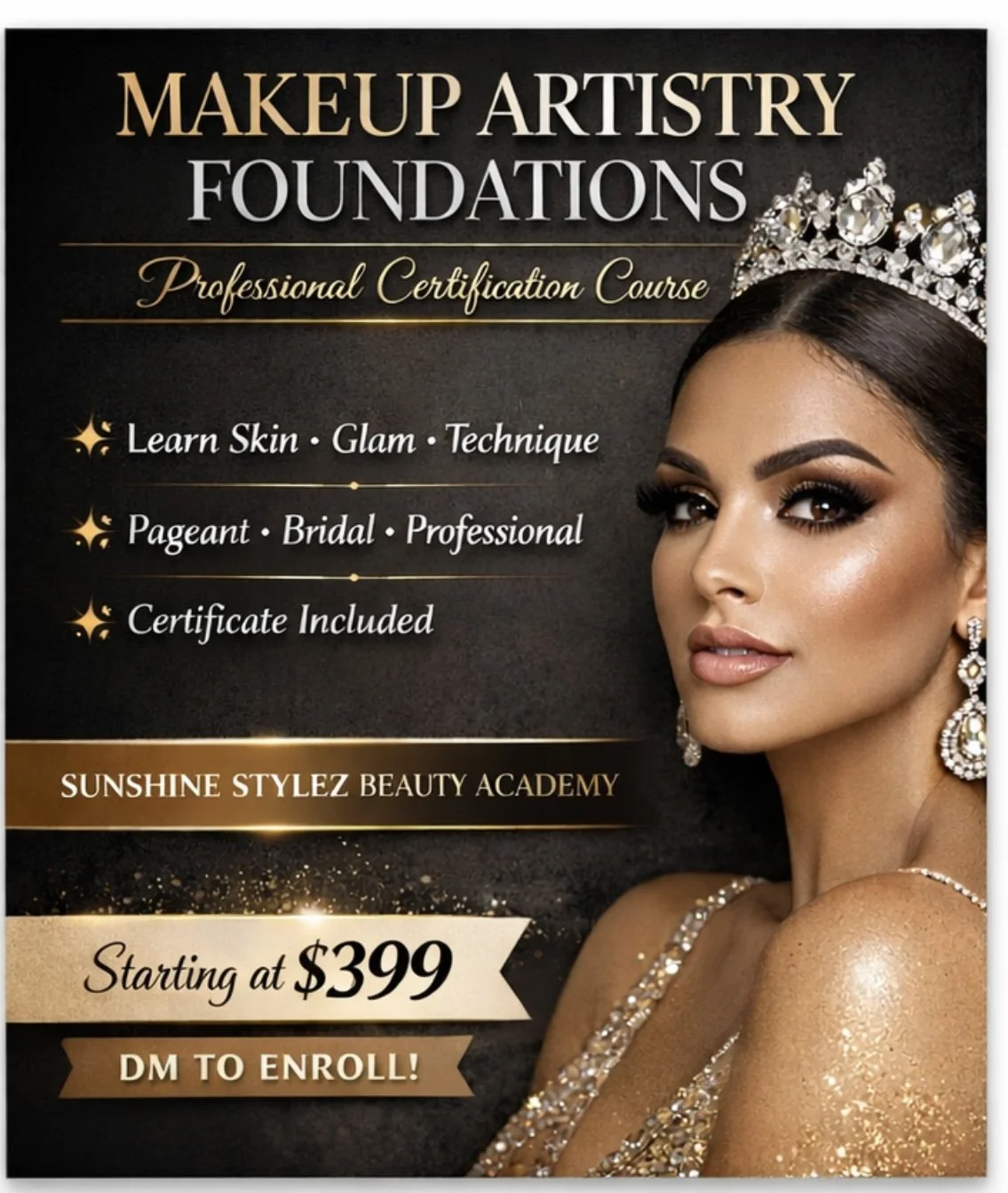 Learn makeup like a pro — right from home! In this online class, you’ll master skin prep, foundation, contouring, brows, eyes, lashes, and lips. With live demos, product tips, and hands-on practice, you’ll get the confidence to create stunning looks for any occasion, all through Zoom or Google Meet.